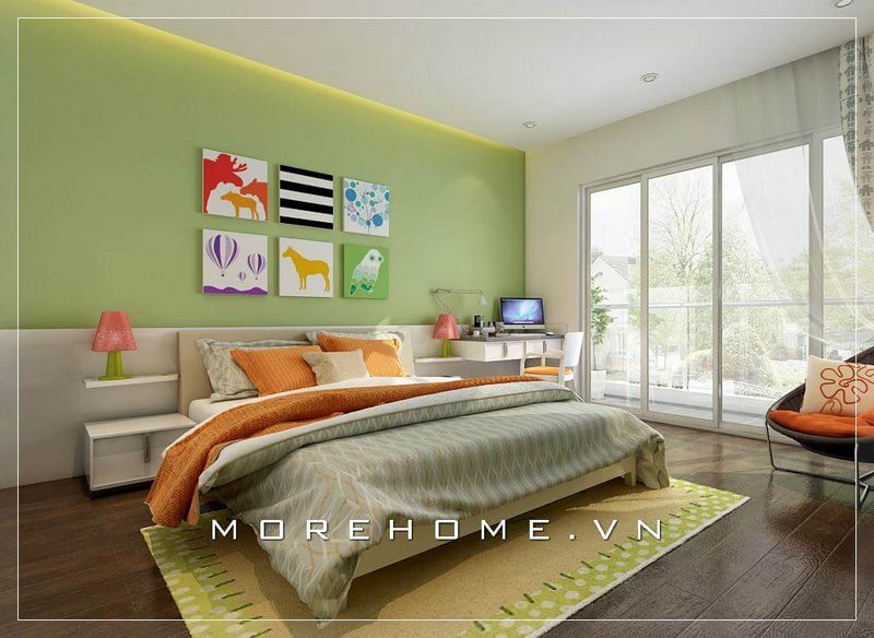 Màu sắc này có khả năng tạo ra một không gian thư giãn, giúp trẻ cảm thấy bình yên và thoải mái sau những giờ học tập căng thẳng. Hơn nữa, màu xanh lá còn kích thích trí tưởng tượng và sáng tạo của trẻ, tạo điều kiện cho những giấc mơ phong phú và đầy màu sắc.